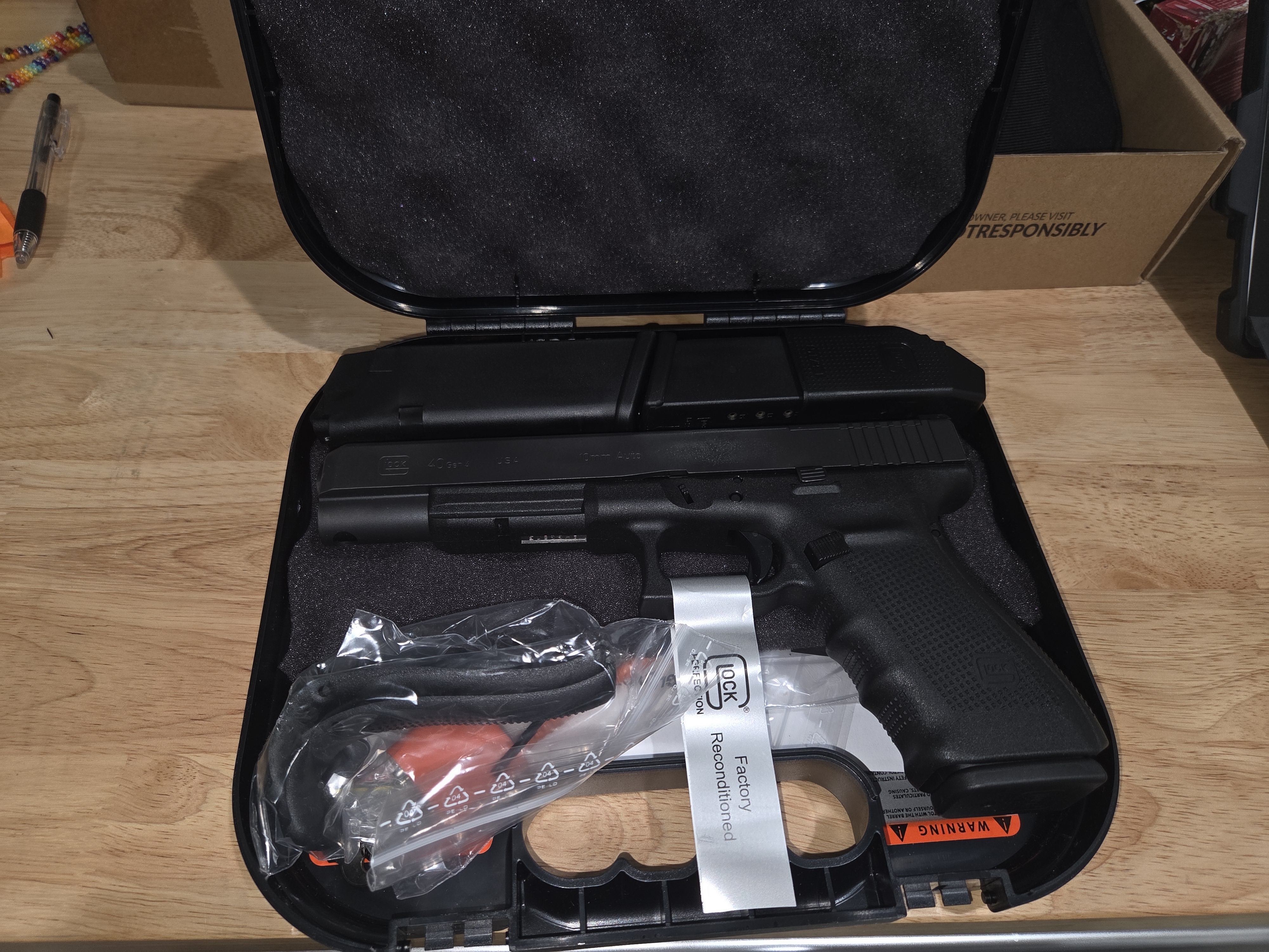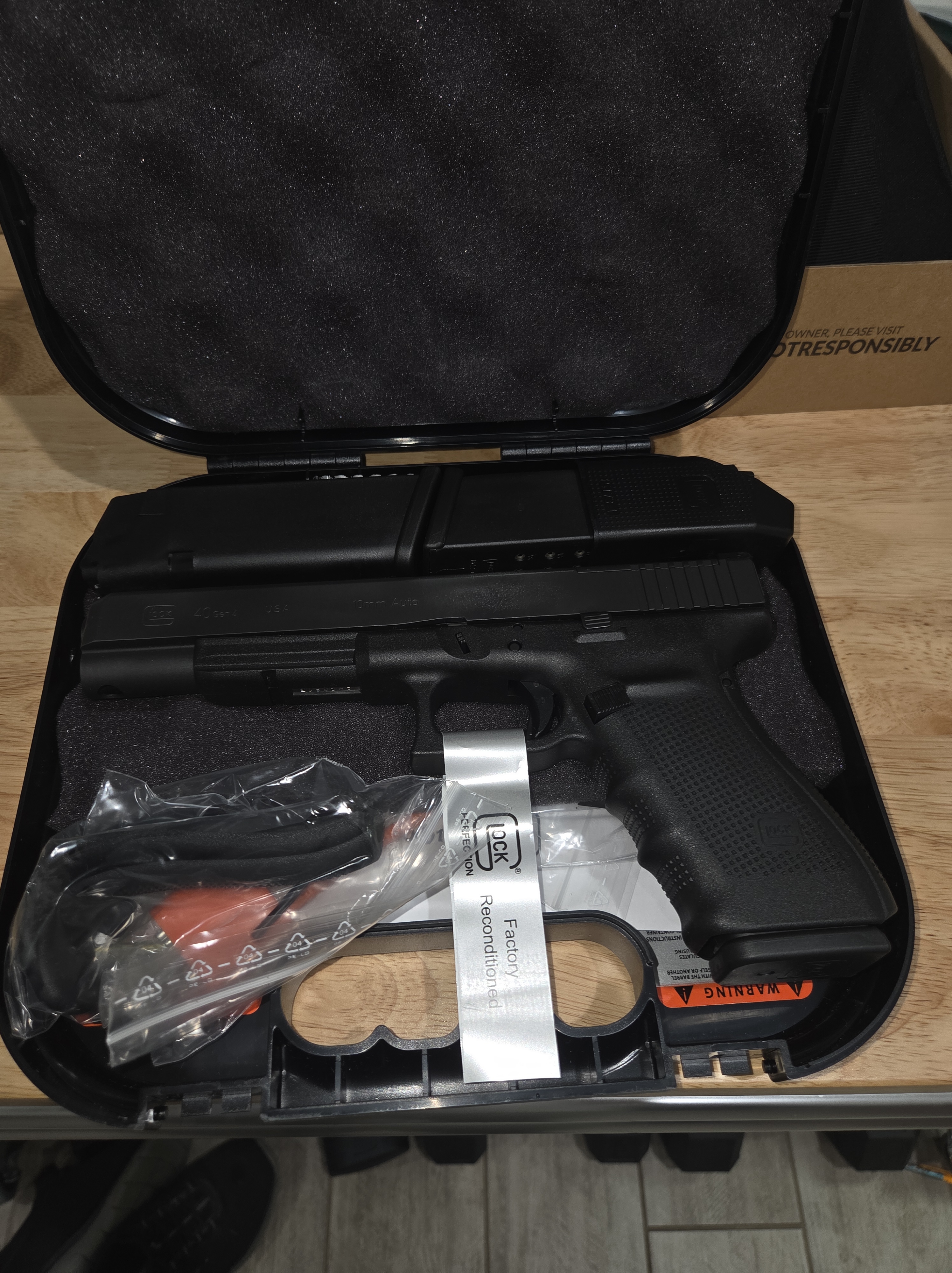 The Glock 40 Gen 4 in MOS Configuration is chambered in 10mm and combines a long slide and barrel for improved velocity with a high magazine capacity. The Modular Back Strap design and the reversible magazine catch let you instantly customize its grip to adapt to accommodate any hand size. The MOS Configuration makes an easy job of mounting a reflex sight on the pistol’s slide without the need for a new slide or separate mounting system.